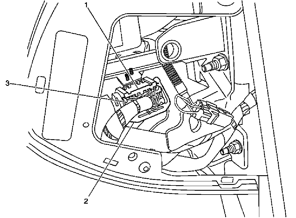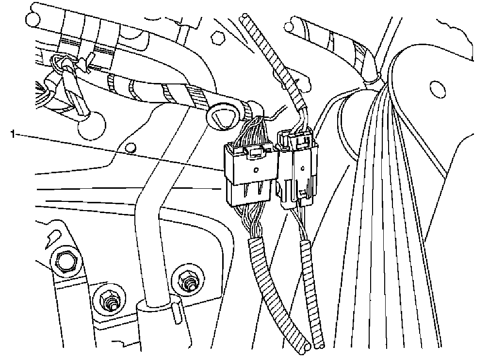 29. Remove the larger gray connector (1) that is attached to the "C" pillar.