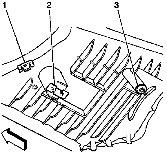 20. On the connector for the body harness, remove the blue terminal position assurance (TPA) (3) from the row containing cavity D1 (circuit 243).