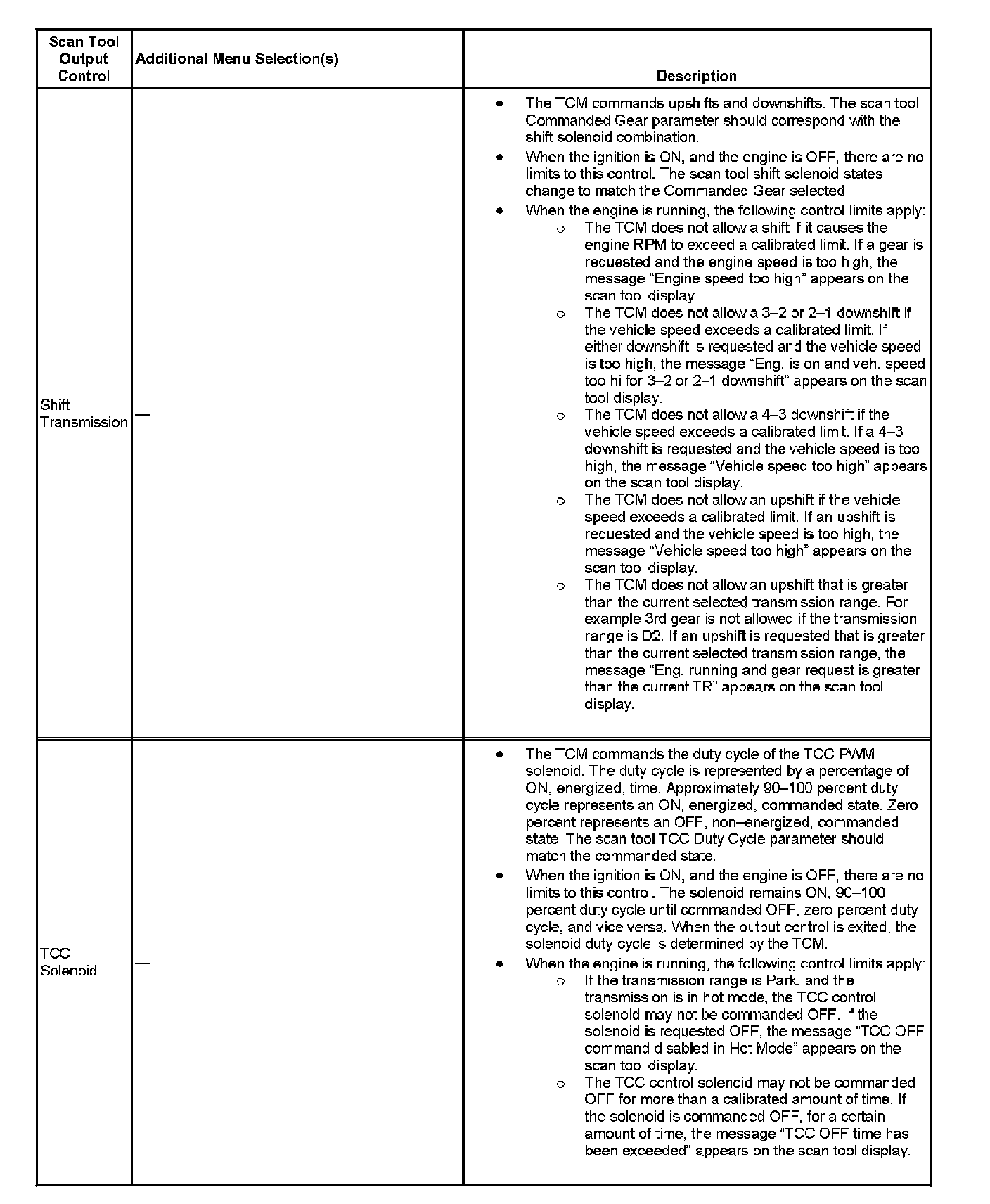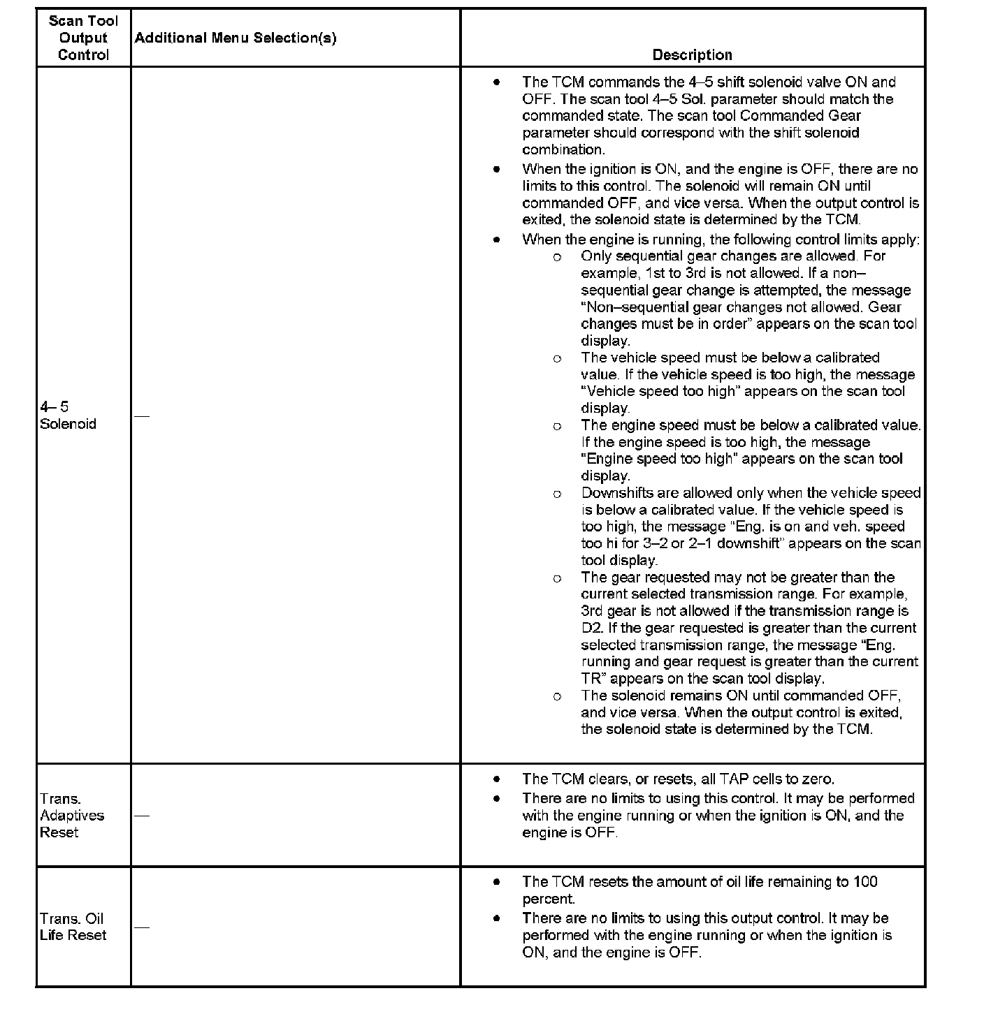 Scan Tool Output Controls