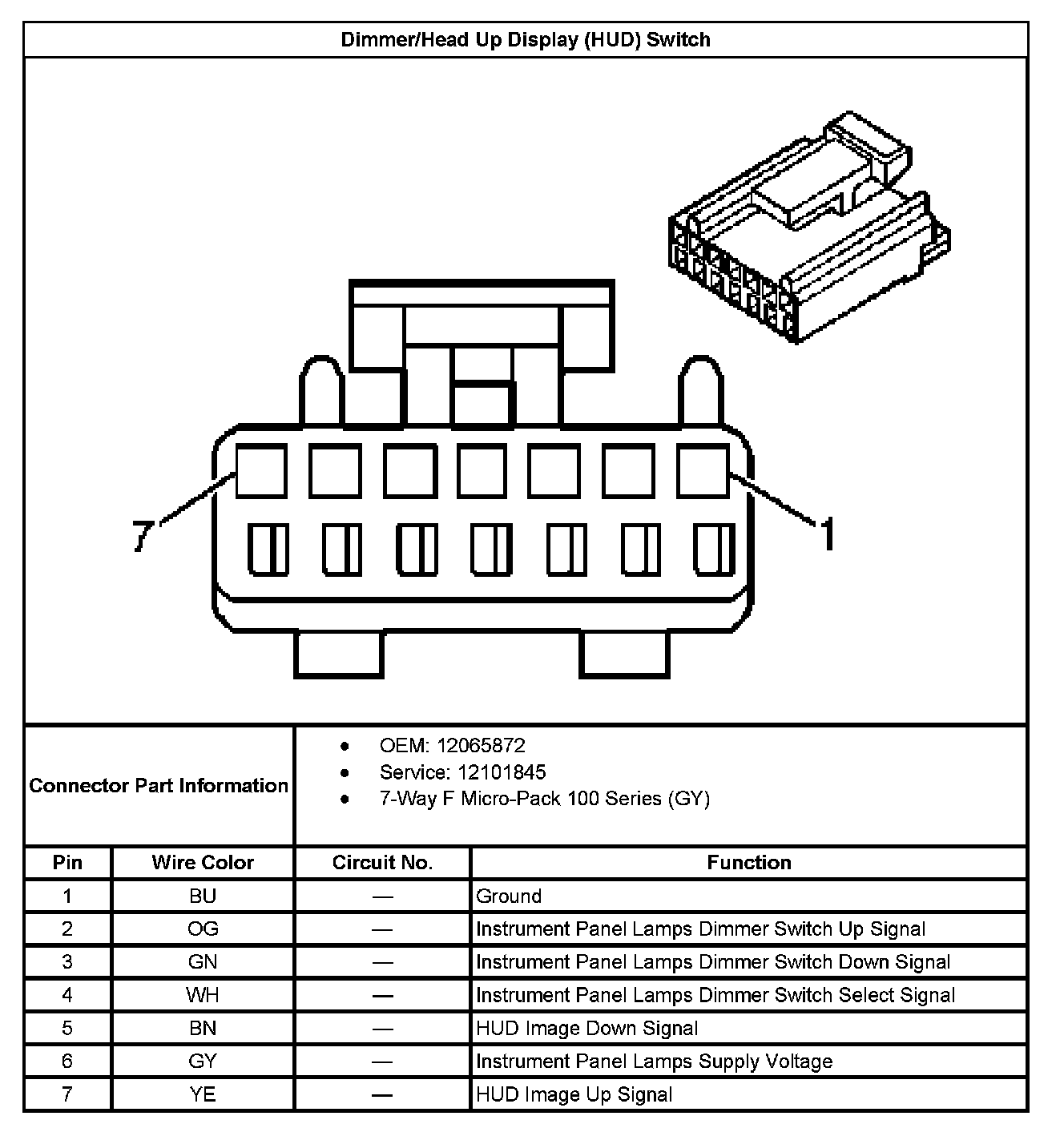 Dimmed/Head Up Display (HUD) Switch: