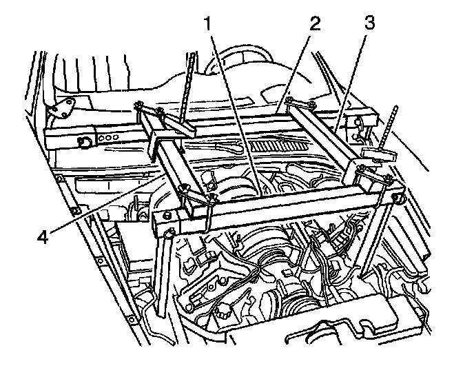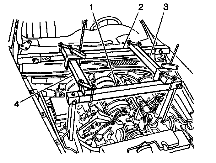 21. Hand-tighten the J 28467-34 lift hook wing nuts securely to remove all slack from the engine support fixture assembly.