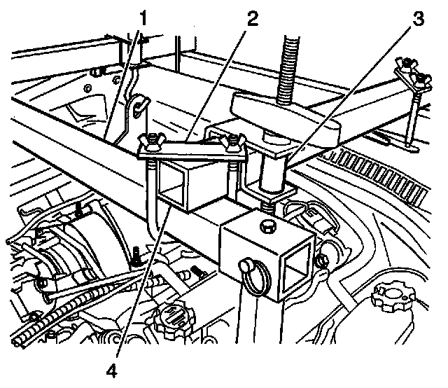 4. Remove the J 28467-86 right engine lift bracket from the right cylinder head.