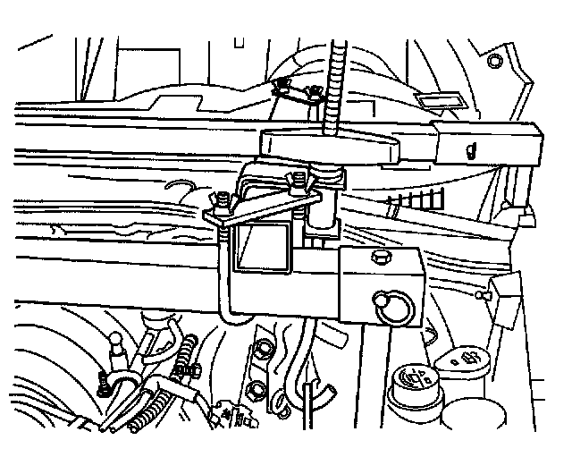 11. Place the front crossbar assembly with supporting legs on the right and left frame rails. Each leg should rest in the shock absorber upper mount on the frame rail.