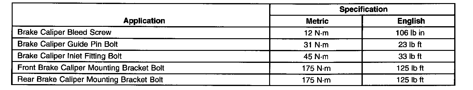Fastener Tightening Specifications:
