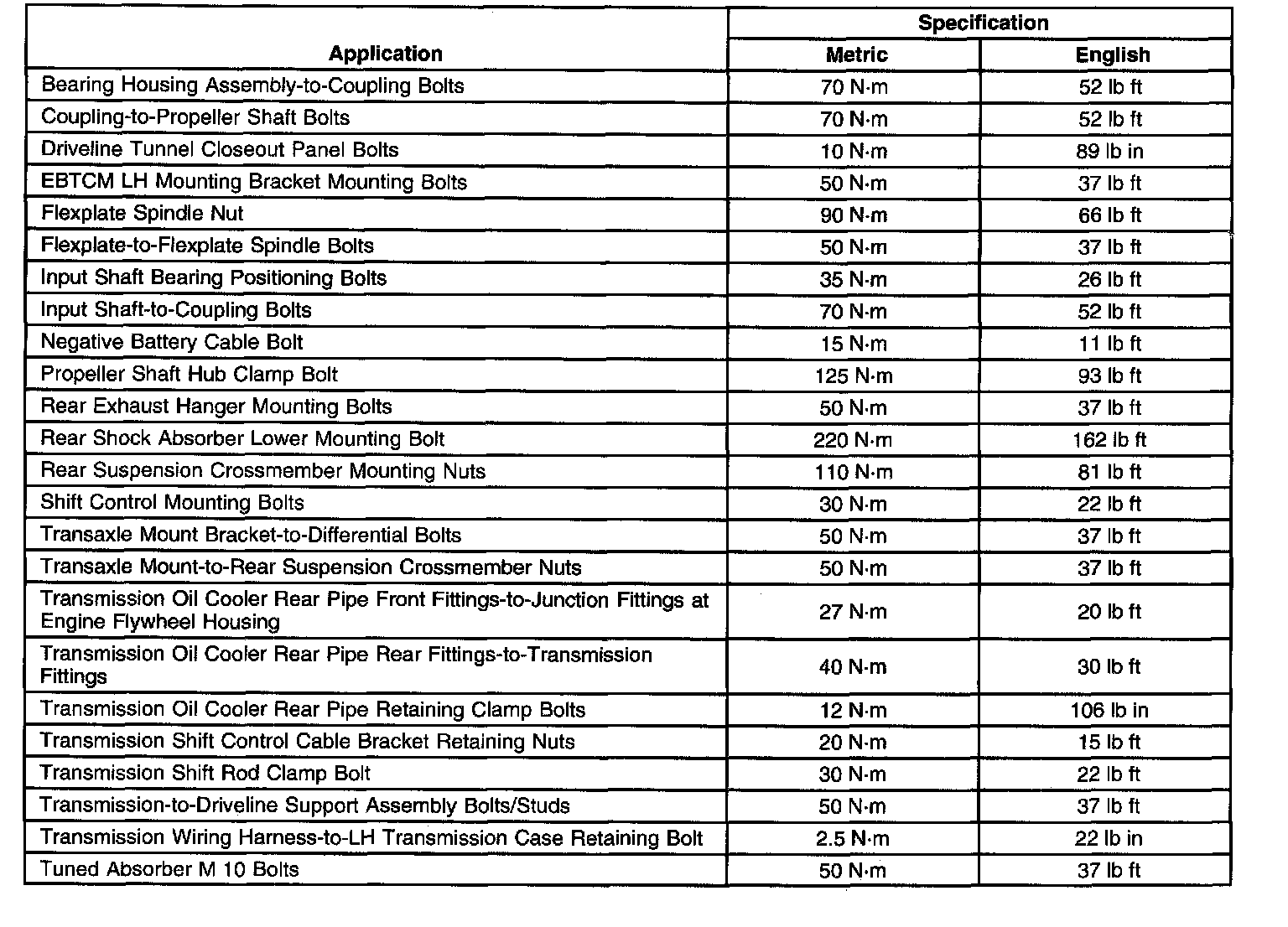 Fastener Tightening Specifications