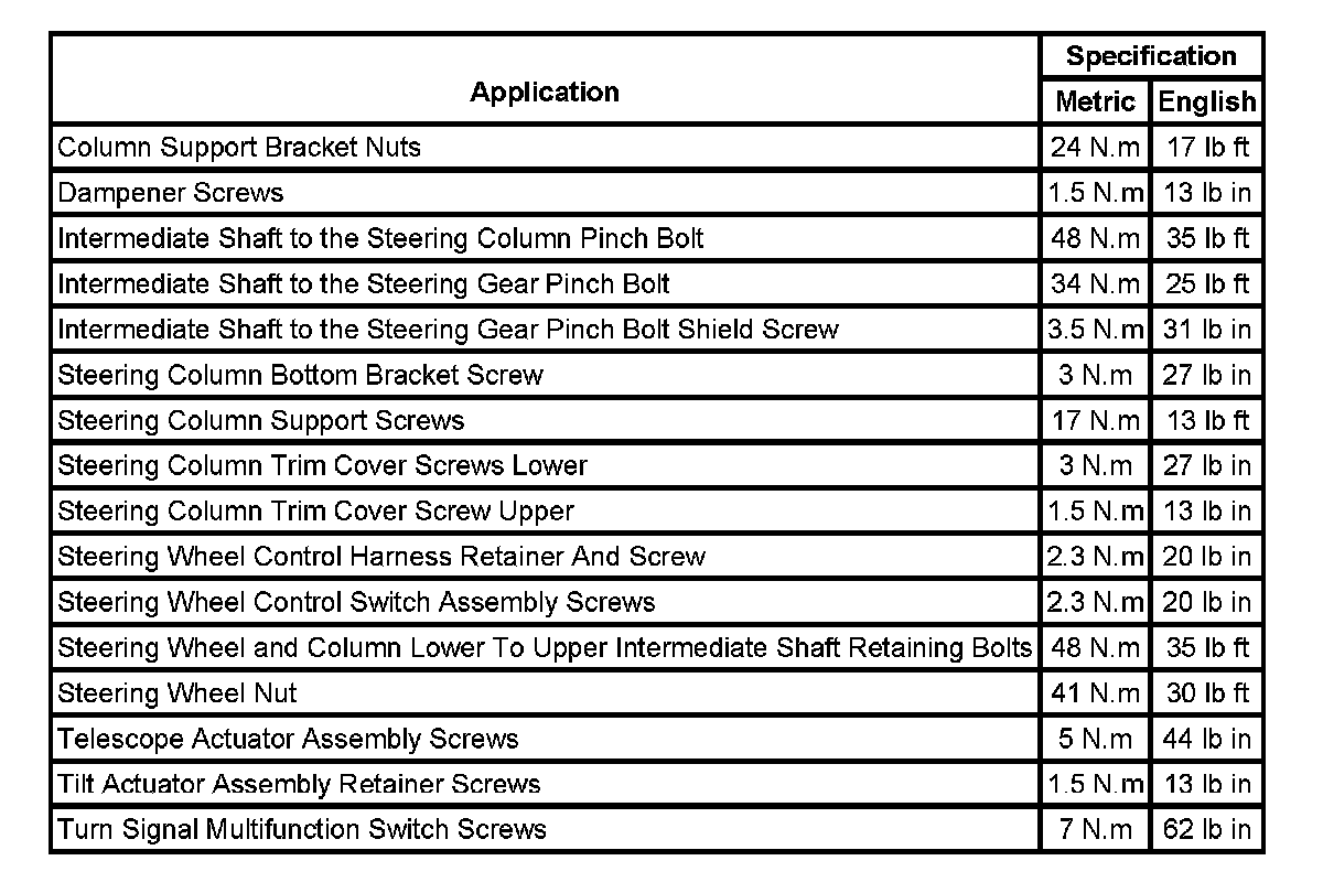 Fastener Tightening Specifications: