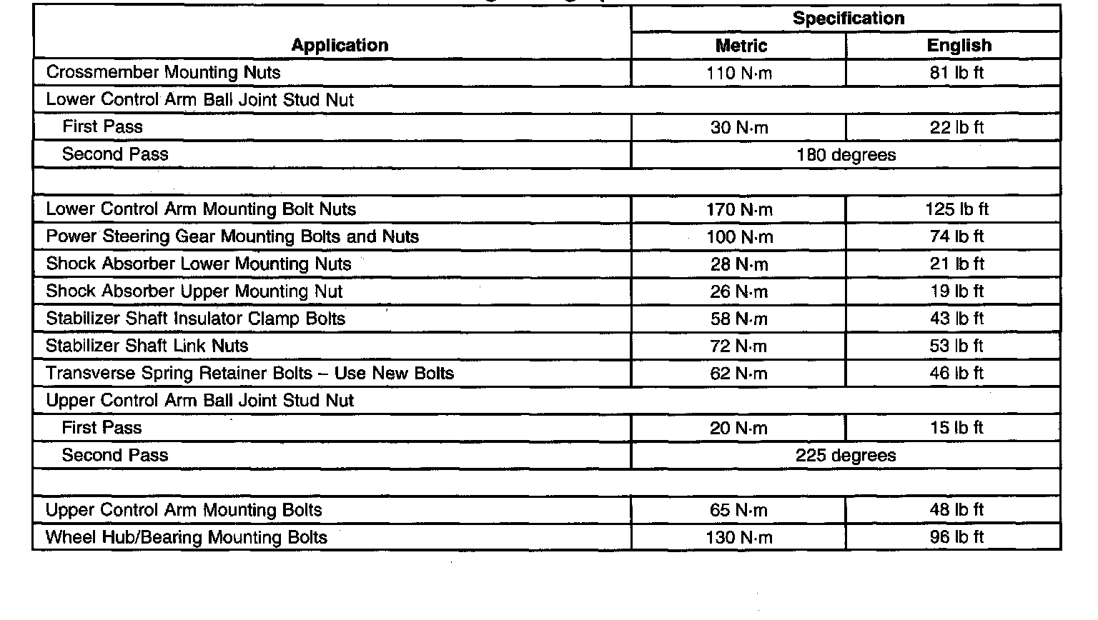 Fastener Tightening Specifications