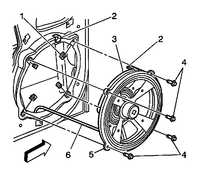 8. Remove the radio speaker fasteners (4).