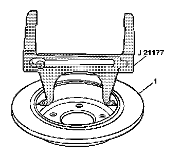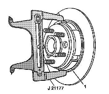 10. Position the J 21177-A over the park brake shoe (1) at the widest point.