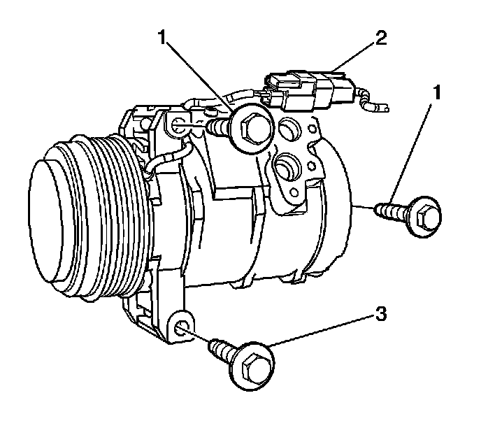 7. Remove the compressor mounting bolt (3) from the compressor.