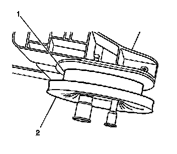 13. Disconnect the HVAC module drain tube (2) from the floor.
