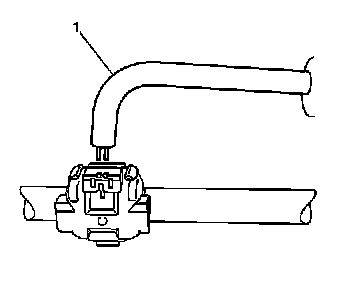 7. Using the J 45689 (1) insert the probe end into the two small openings of the plastic quick joint.