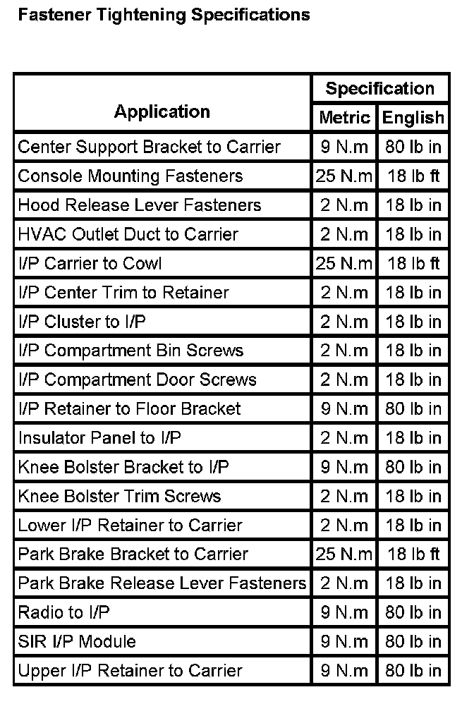 Instrument Panel, Gauges and Warning Indicators: Specifications