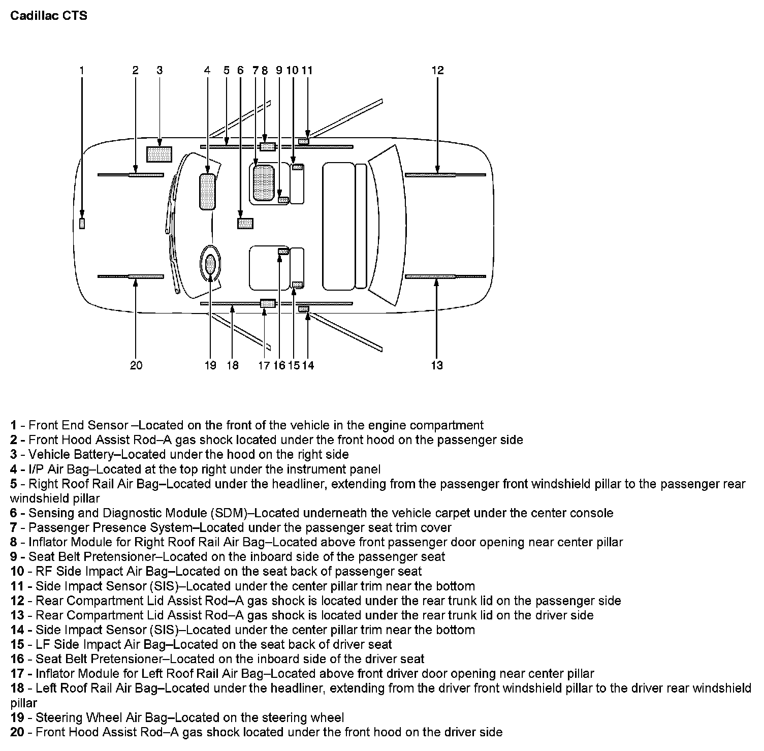 The SIR Zone Identification Views shown illustrate the approximate location of all SIR components available for the vehicle. This will assist in determining the appropriate SIR Disabling and Enabling Zones for a given service procedure, refer to SIR Disabling and Enabling Zones.