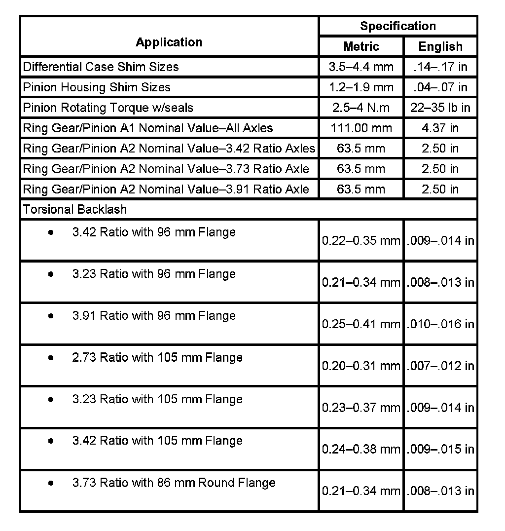 Rear Axle Specifications