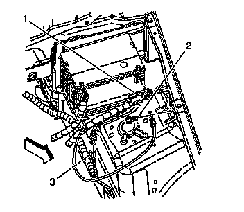 3. Disconnect the body harness connector (3) from the battery negative cable.
