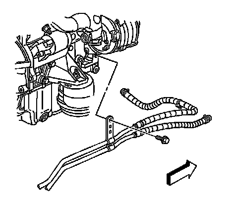 18. Remove the bolt securing the transmission fluid cooler pipes brace to the engine.