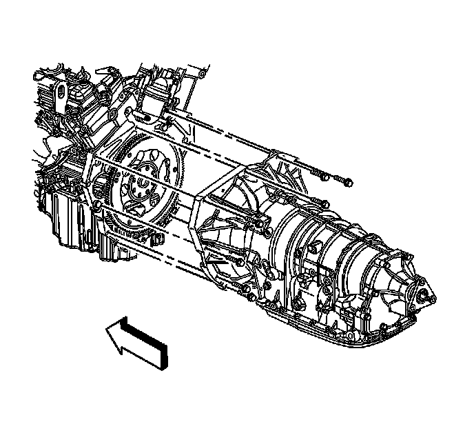 Using the transmission jack, carefully raise the transmission to the vehicle.
