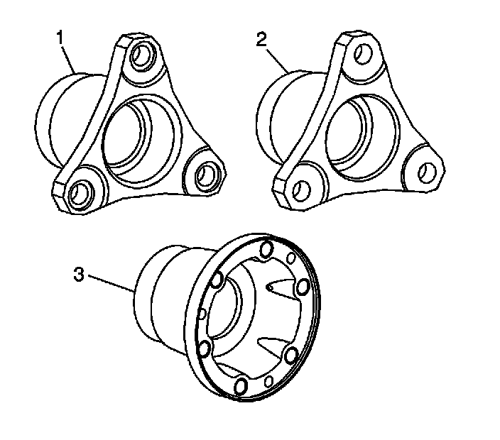 4. Determine which flange is used. The 105 mm flange (1) is used with ratios 2.73, 3.23 and 3.42. The 96 mm flange (2) is used with ratios 3.42, 3.23 and 3.91. The 86 mm flange (3) is used with ratio 3.73.