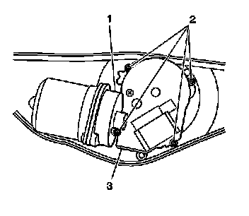 2. Remove the fasteners (2) from the wiper motor cover (3).
