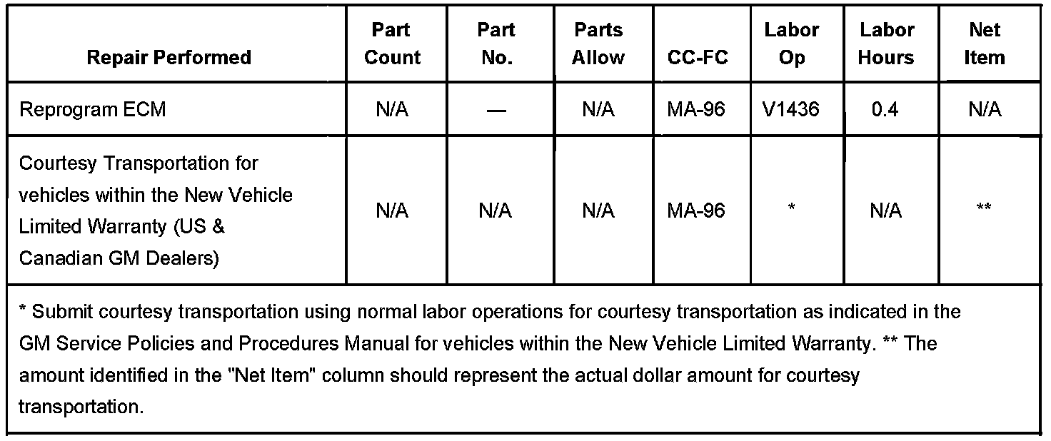 GM dealers should confirm vehicle eligibility through GMVIS (GM Vehicle Inquiry System) prior to beginning recall repairs. [Not all vehicles within the above breakpoints may be involved.]