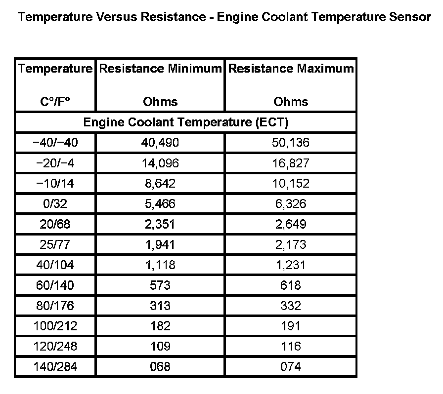 Temperature Versus Resistance - Engine-Coolant Temperatue Sensor: