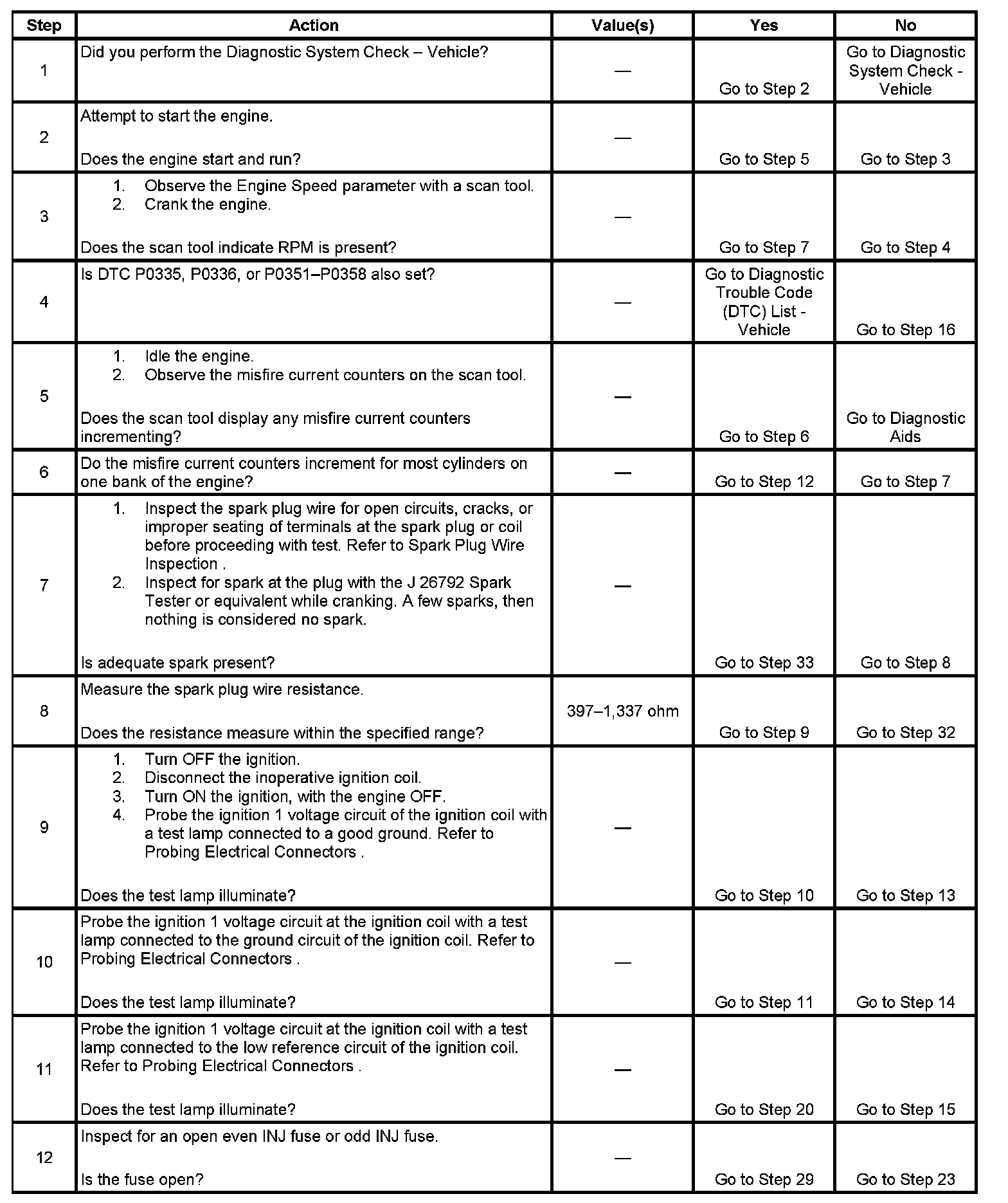 12. A good indication that the fuse is open is all off the misfire current counters are incrementing on one side of the engine. Inspect the ignition positive voltage circuit for a grounded circuit. If the fuse is open and the ignition coil circuits are OK, inspect the injector circuits for being grounded.