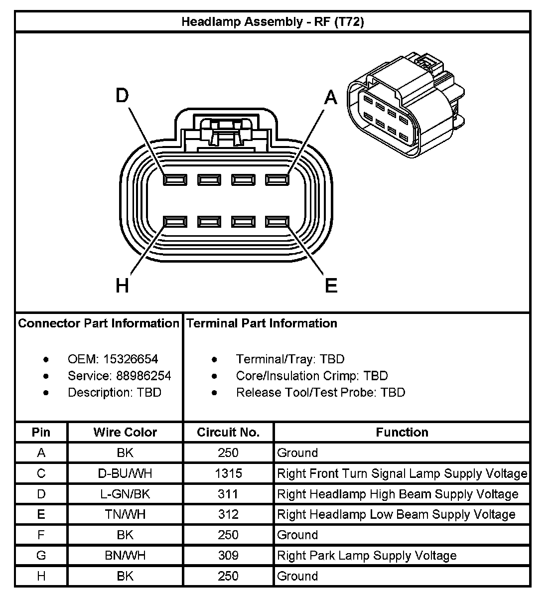 Headlamp Assembly - RF (With RPO Code T72):