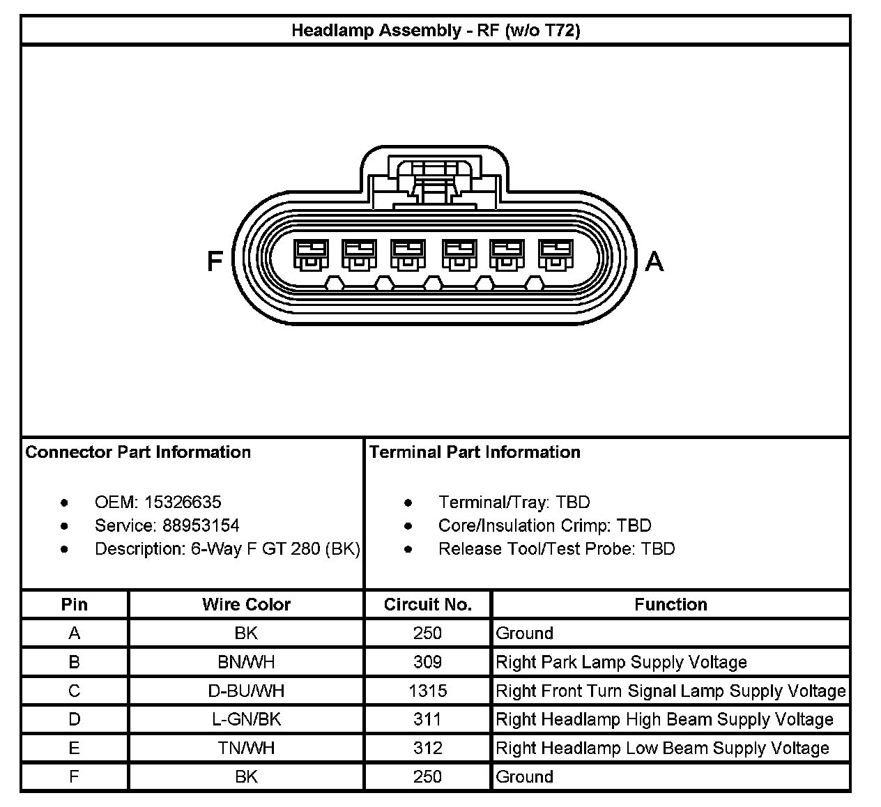 Headlamp Assembly - RF (Without RPO Code T72):