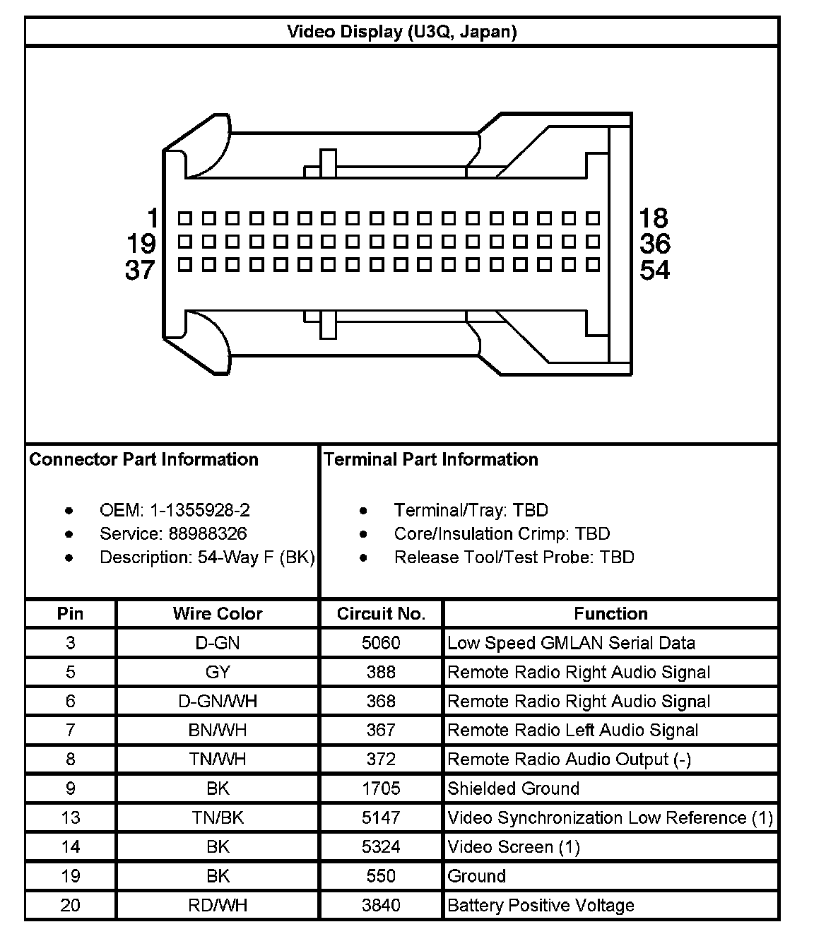Video Display (With RPO Code U3Q, Japan):