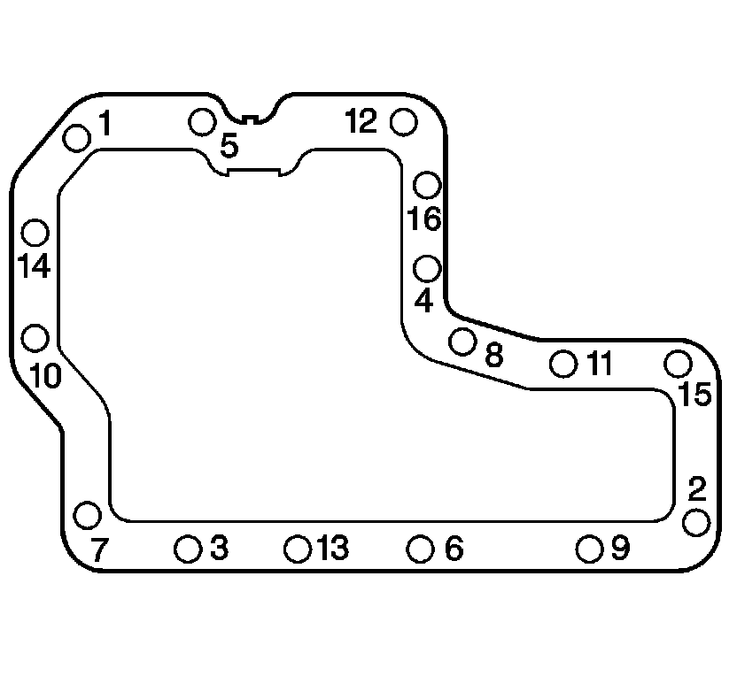 Tighten the pan bolts 3 times to the proper specification, in the sequence shown: