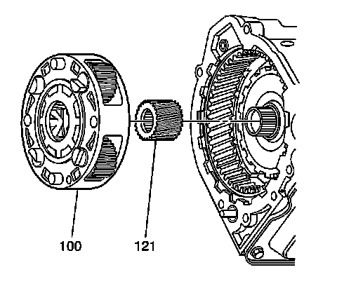 1. Install the sun gear (121) with the bushing and the seal side facing differential.