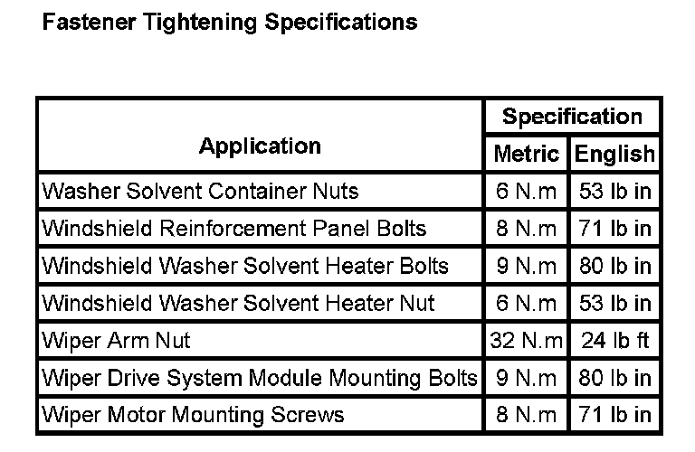 Wiper and Washer Systems: Specifications