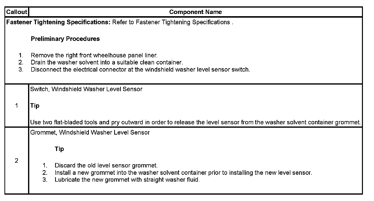 WASHER SOLVENT CONTAINER LEVEL SENSOR REPLACEMENT
