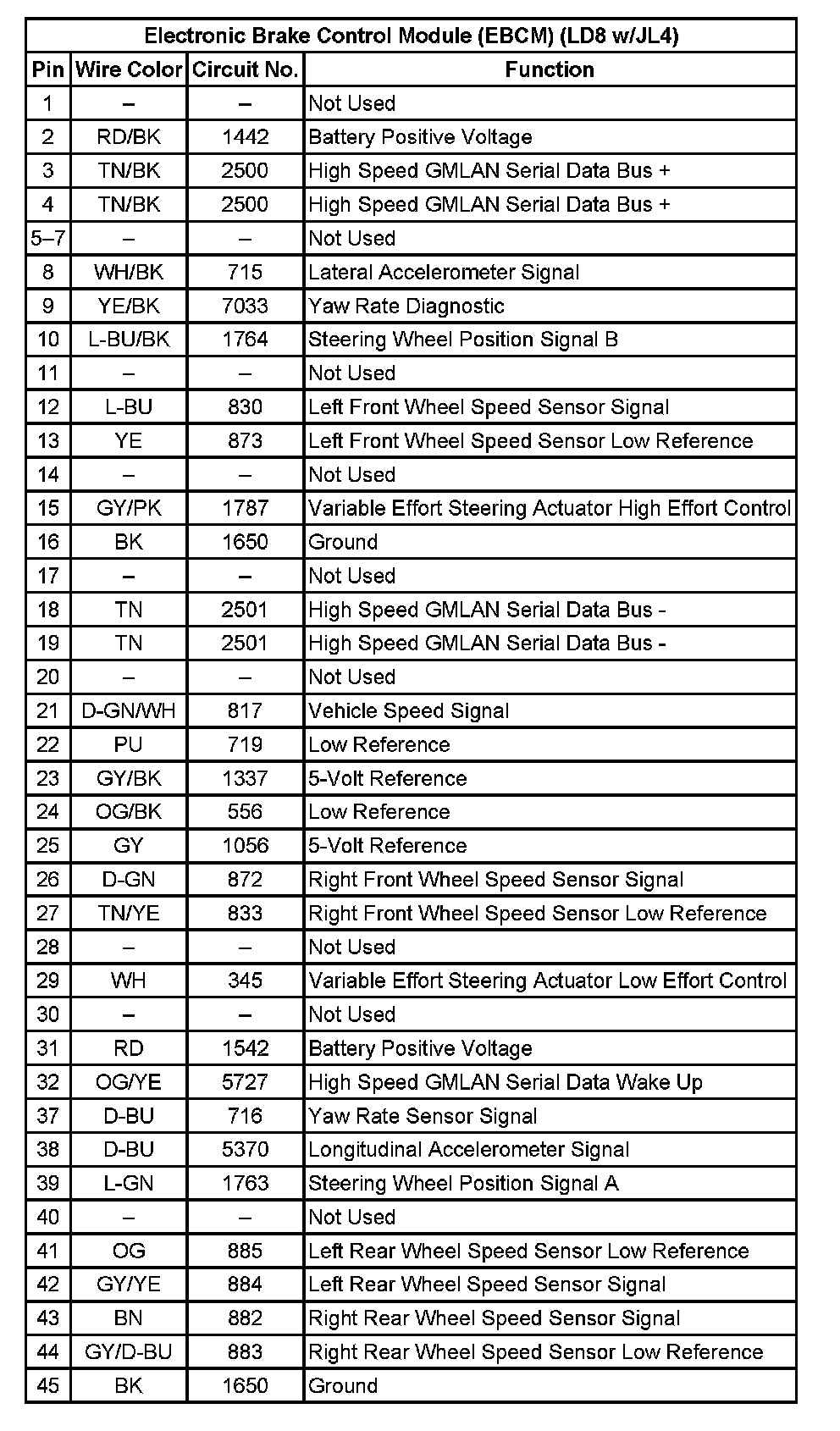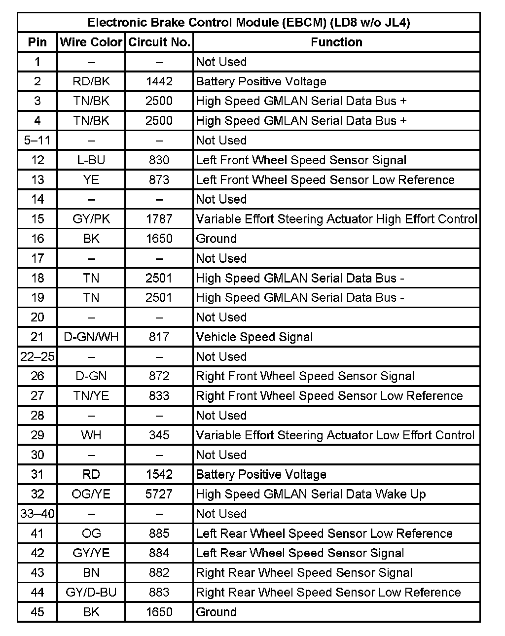 ABS Connector End Views Electronic Brake Control Module (EBCM)Electronic Brake Control Module (EBCM):