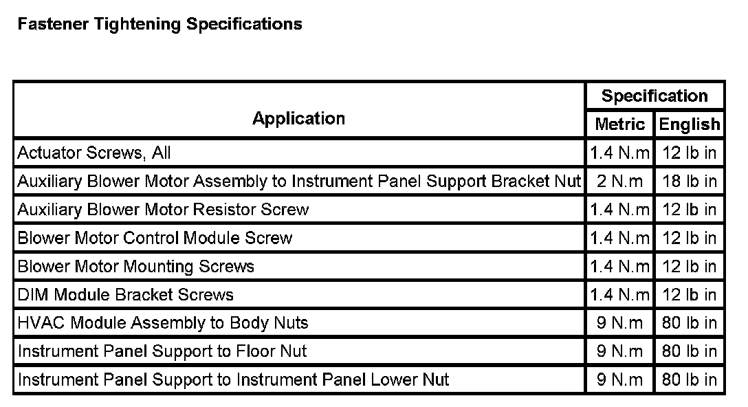Fastener Tightening Specifications: