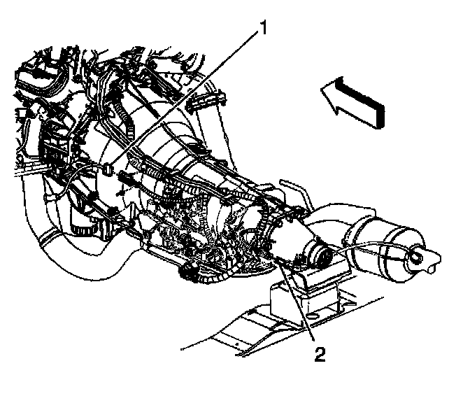 4. Disconnect the oxygen sensor electrical connectors (1, 2).