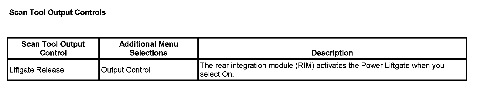 Scan Tool Output Controls: