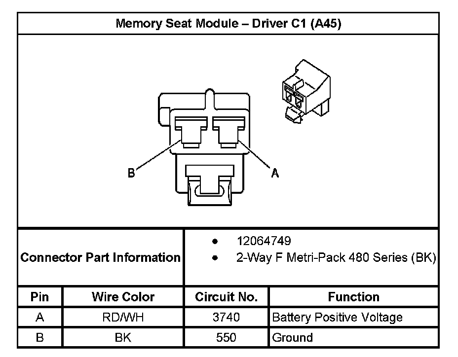 Memory Seat Module - Driver C2 (With RPO Code A45):
