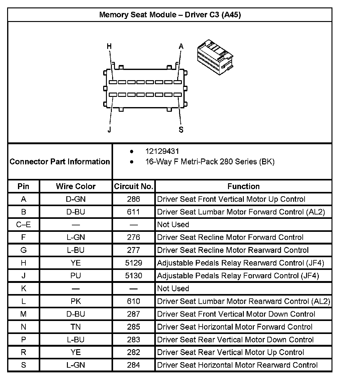 Memory Seat Module - Driver C3 (With RPO Code A45):