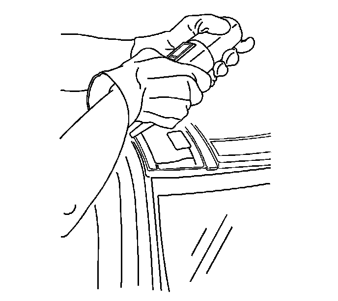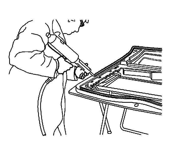 22. Run a continuous 10 mm (0.4 in) adhesive bead around the perimeter of the frame to ensure the correct coverage and prevent any water intrusion at the roof pinch-weld.