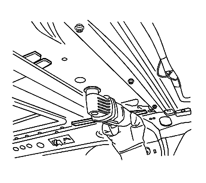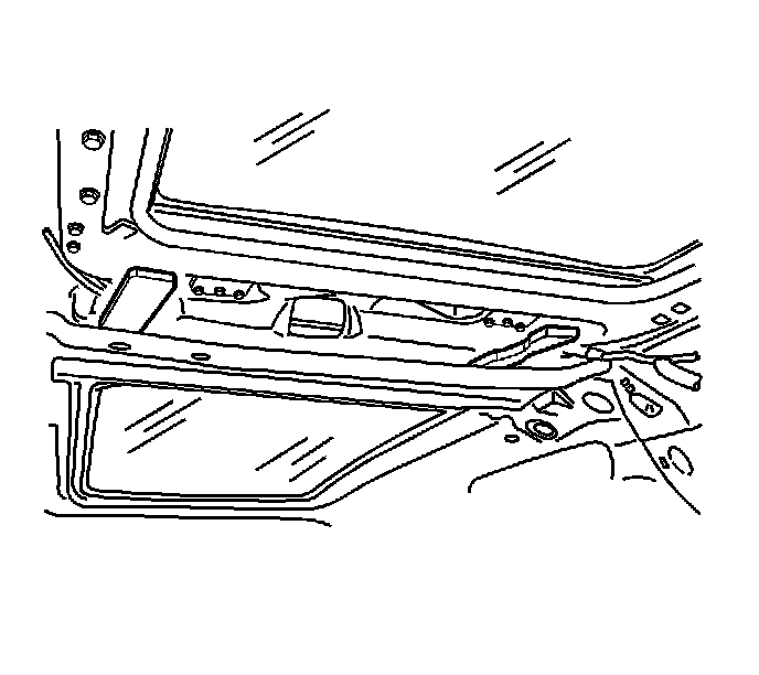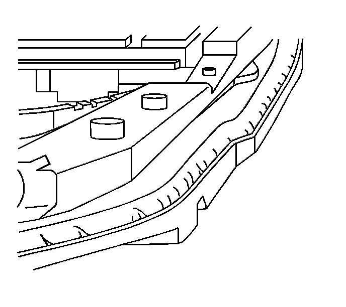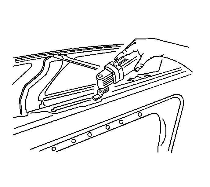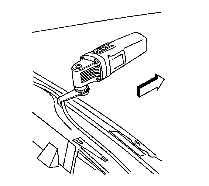 12. Using J 39040 with the serrated U-shaped blade, or equivalent, start at the front edge of the sunroof module and carefully cut the adhesive which retains the sunroof module to the pinch-weld flanges.