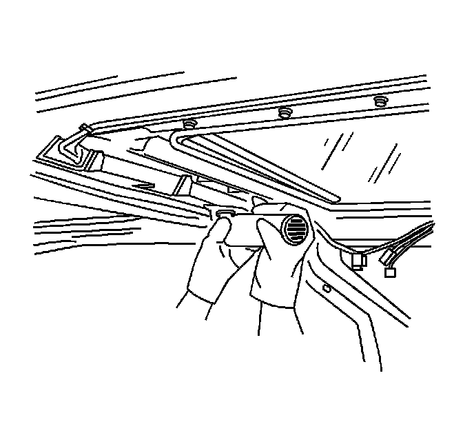38. Pull the strings outward from the trim lace in order to position the trim lace to the headliner. Refer to Sunroof Finishing Lace Replacement (Front) Sunroof Finishing Lace Replacement (Rear).
