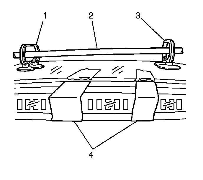 5. Install the dual cup suction cups (1, 3) to the outer rear edges of the rear vent window panel.