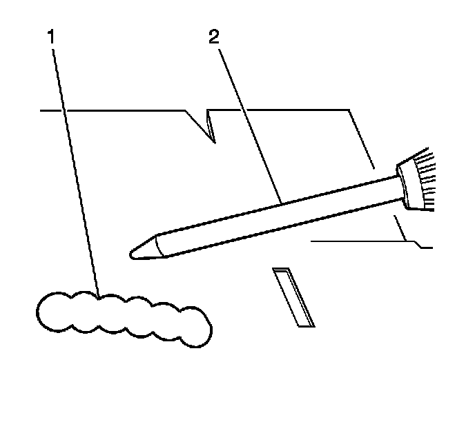 20. Dispense a small amount of bond material (1) to ensure that the material is mixing evenly through the mixing tube extension (2).