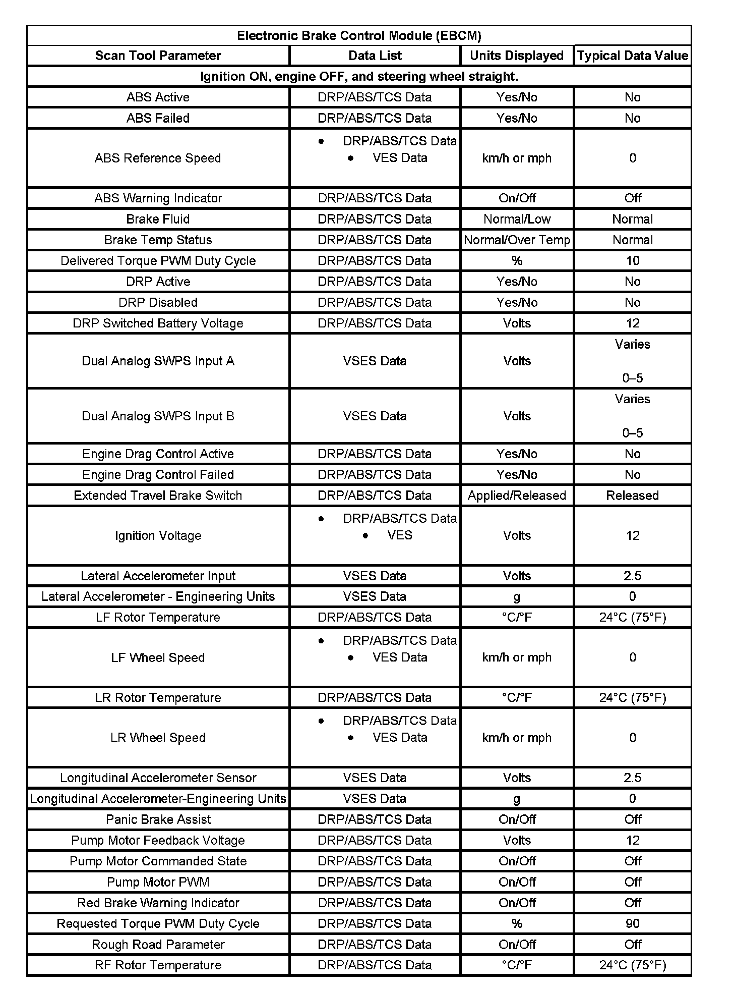 Scan Tool Data List