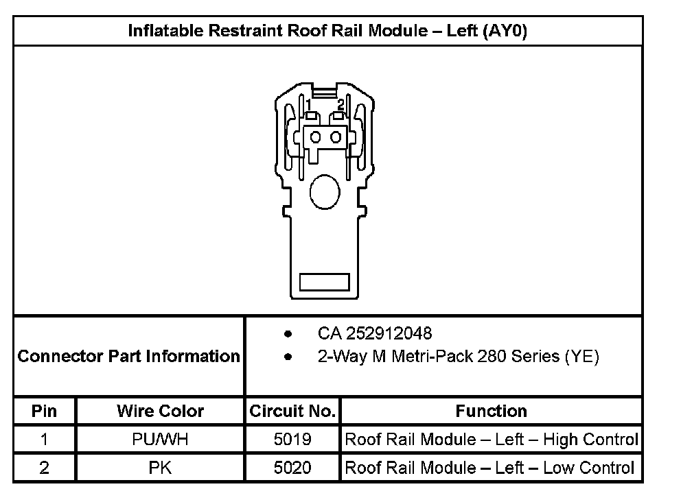 Inflatable Restraint Roof Rail Module - Left (With RPO Code AY0):