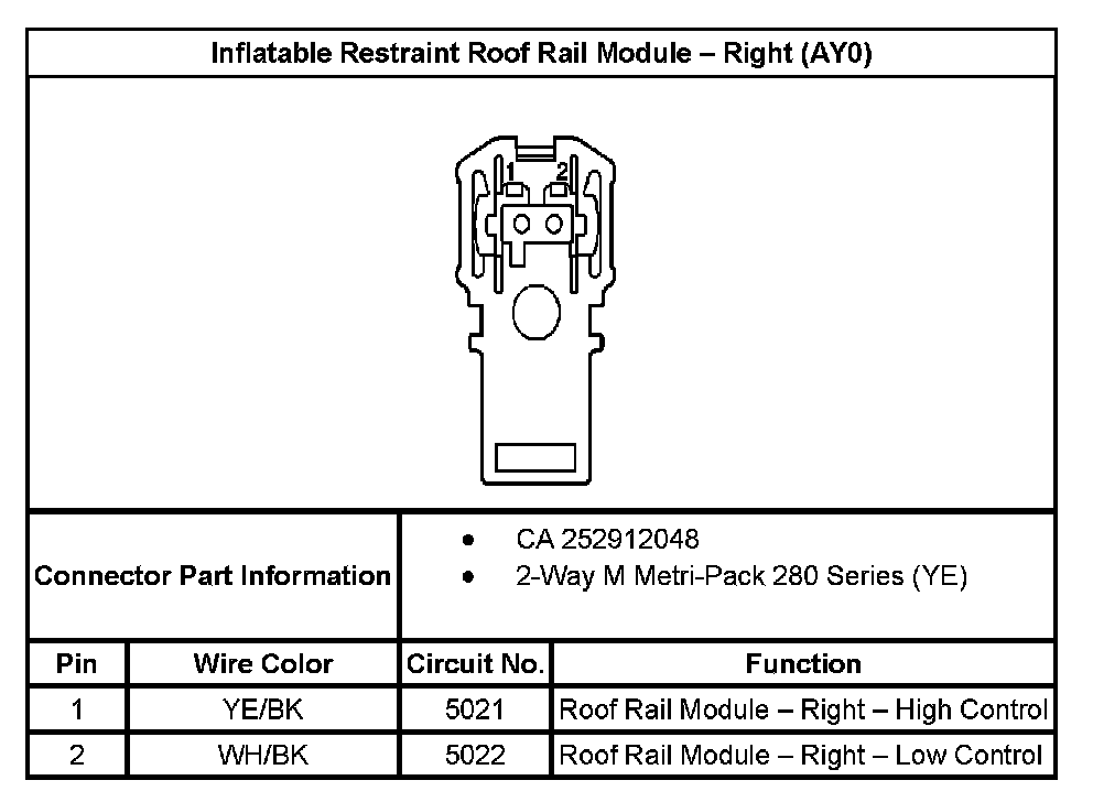 Inflatable Restraint Roof Rail Module - Right (With RPO Code AY0):