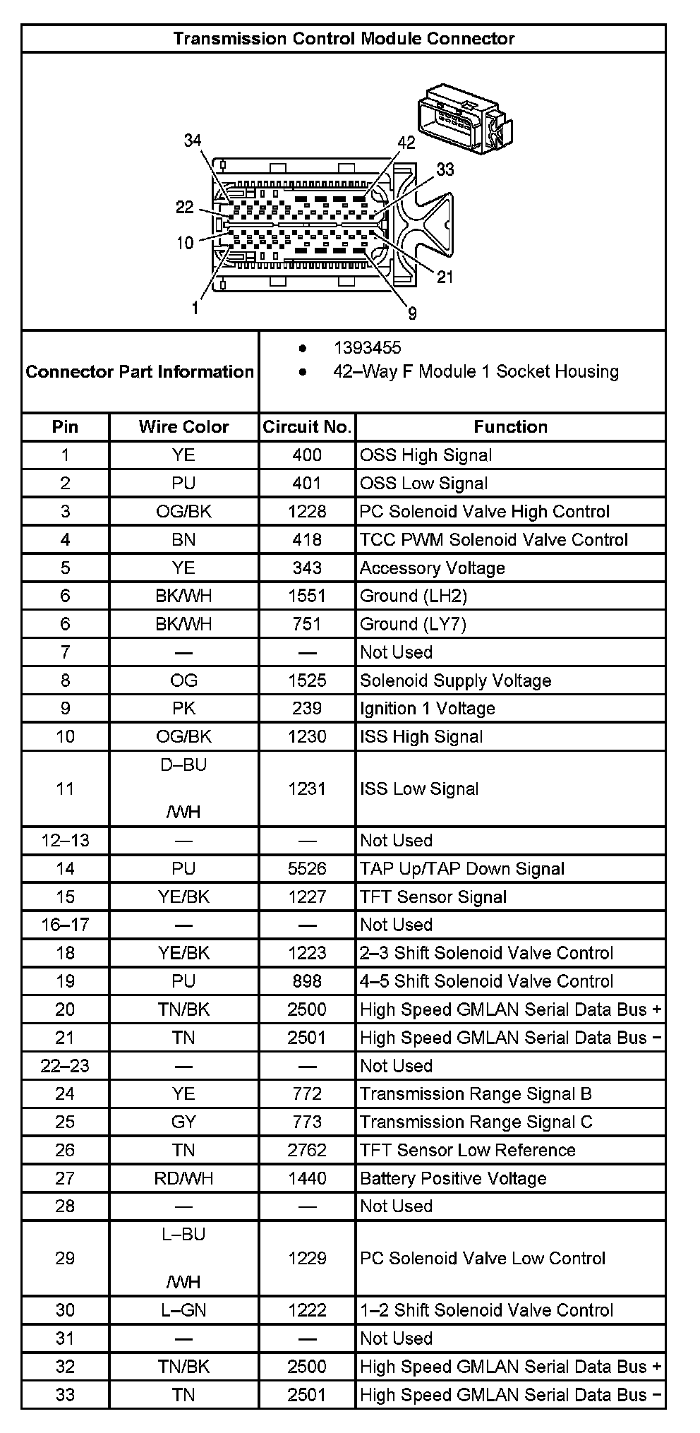 Transmission Control Module Connector: