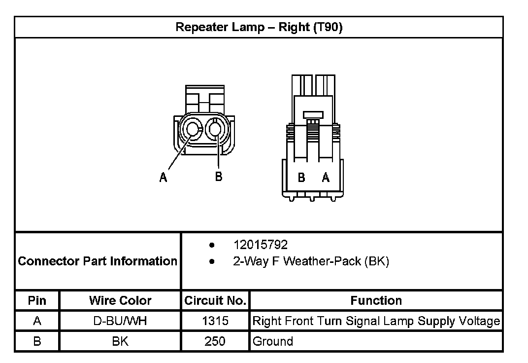 Repeater Lamp - Right (With RPO Code T90):